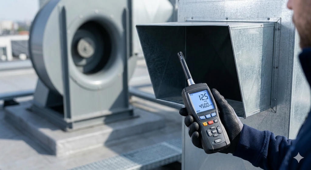 מדידות ובדיקות מלאות של המפוחים, התעלות והבקרה.